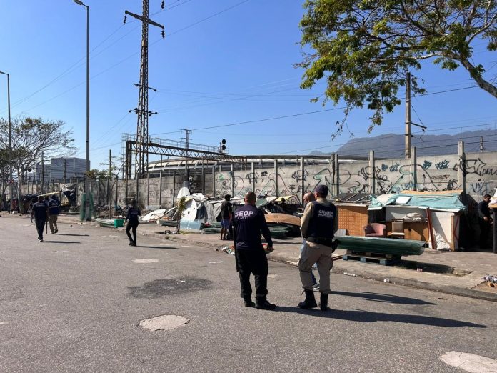 Participaram da ação a Polícia Militar, a Comlurb e assistentes sociais. A operação começou por volta das 8h20 e não exigiu interdição da via. Cinco pessoas tiveram a ficha criminal checada, sem conduções à delegacia.