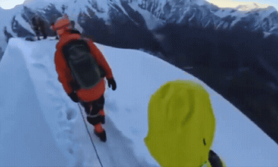 Na caminhada ao topo, o montanhista, identificado como Hong, o homem se soltou da corda de segurança em uma área nevada próxima a uma fenda para...